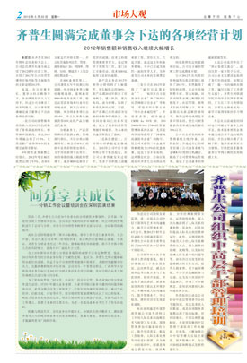齊普生圓滿完成董事會下達(dá)的各項經(jīng)營計劃